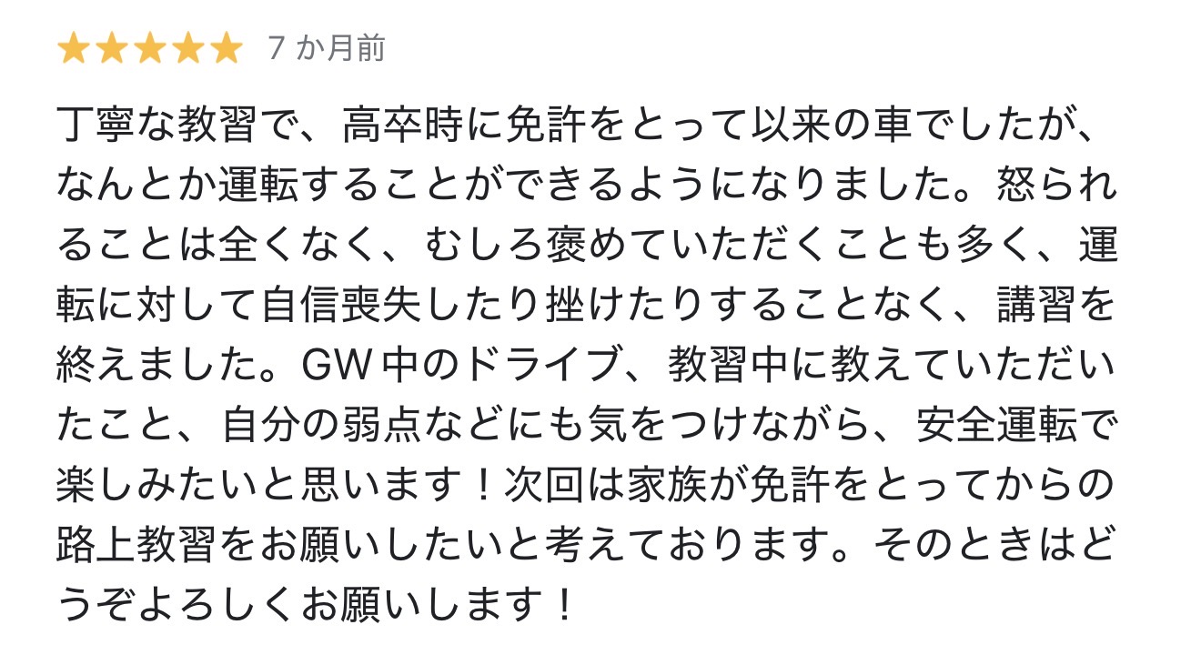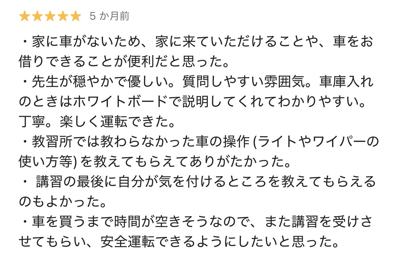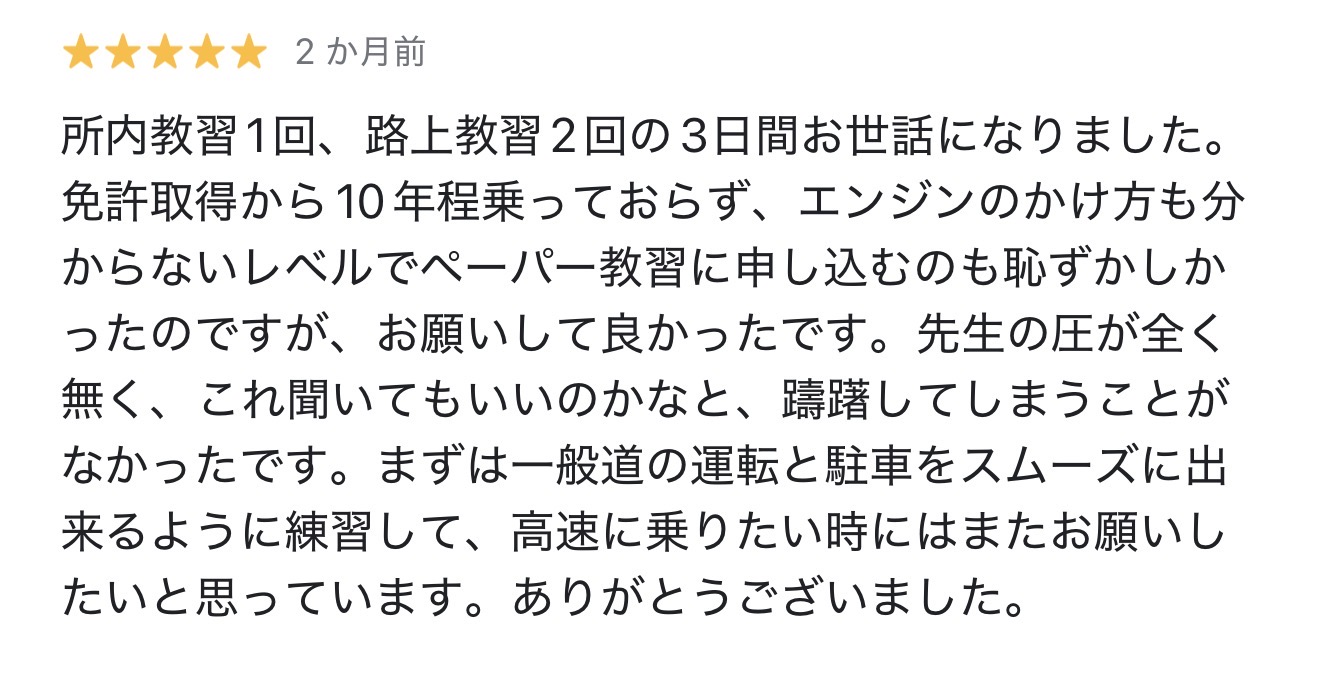 - 他の教習や講習がスパルタ・流れ作業で合わなかった
